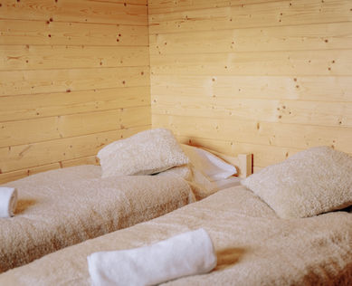 Łóżka z wygodnymi materacami, pościel, ręczniki, szafy, półki, lampki nocne, zasłony,